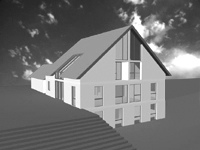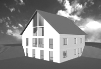 Das freistehende Einfamilienhaus mit Einliegerwohnung wurde in Simmelsdorf bei Nürnberg im Außenbereich d.h. außerhalb eines gültigen Bebauungsplan errichtet. Die Gemeinde Simmelsdorf benutzt hier das Instrument der Ortsabrundungssatzung, um Baurecht zu schaffen.