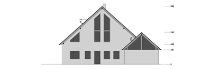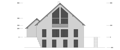 Die vorgefundenen Hanglage wurde genutzt, um auf zwei verschiedenen Höhenniveaus jeweils gleichberechtigte Hauszugänge zu realisieren. Hierdurch konnte auf ein gemeinsames Treppenhaus verzichtet werden.