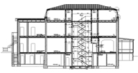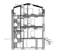 Um das Gebäude als Mehrfamilienhaus mit fünf Wohneinheiten umnutzen zu können, musste die Erschliessung neu organisiert werden. Die vorhandenen einläufigen Holztreppen wurden gegen dreiläufige Zweiholmtreppen aus Stahlbeton ausgetauscht. Im Zuge dieser Maßnahmen wurde das Treppenhaus aus Kalksandsteinmauerwerk neu aufgemauert.