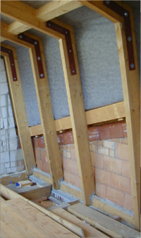 Der Hauptflügel des Gebäudes wurde vor ca. 150 Jahren errichtet. Teilweise waren Fachwerk-konstruktionen mit Ausmauerungen im Erd- und im Obergeschoss vorzufinden. Diese konnten leider nicht erhalten werden, da die während des Leerstandes eingedrungene Nässe dazu geführt hat, daß sich über die Jahre hinweg der Echte Hausschwamm und diverse Nassfäulepilze  ansiedeln konnten.